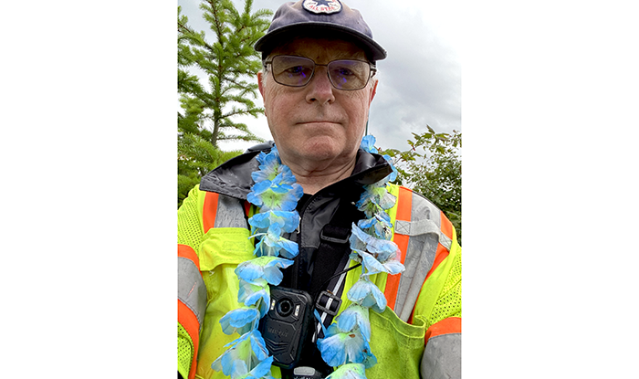 He started to put it into his recycle bag, but it would have become dirtier. So, he wore it. He seemed to get much fewer waves and honks after he was wearing it.