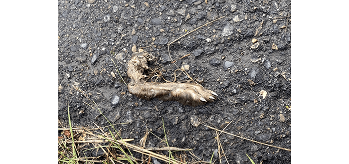 We did remove some roadkill today. We pulled it onto the sidewalk trying to determine what it was.