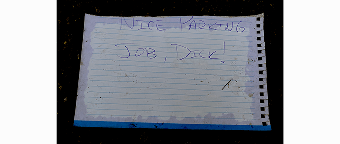 In the Bothell parking lot, we found a handwritten note.