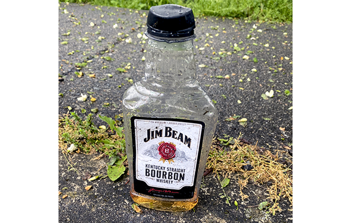 On the home stretch, we found someone left a bottle of Jim Beam with about a shot left in it.