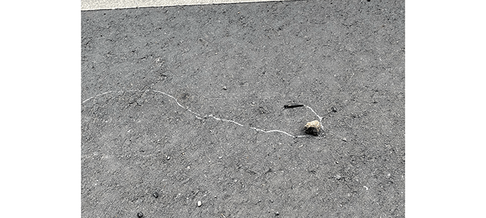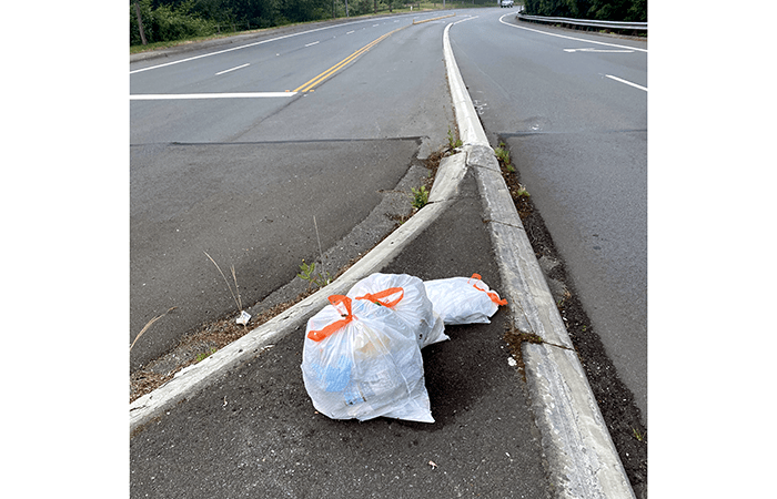 Near the park-and-ride, we found someone had dumped some trash on an island in the middle of the street.