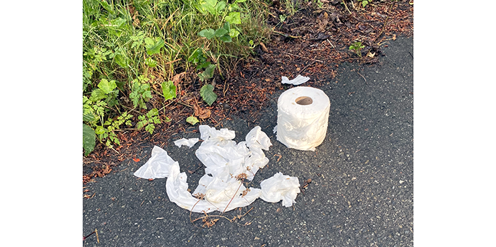 Usually on the day after July 4th, we are overloaded picking up blown-up bits of paper and cardboard. We were pleasantly surprised that, since fireworks have been banned, there was very little fireworks trash. But there was this.