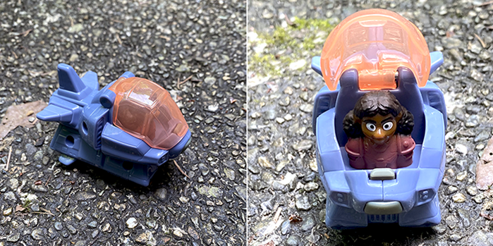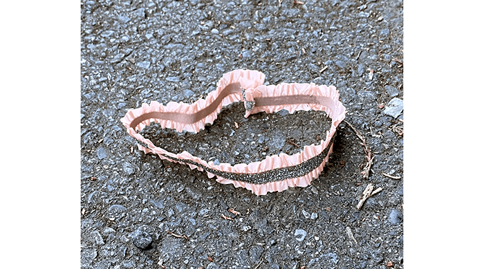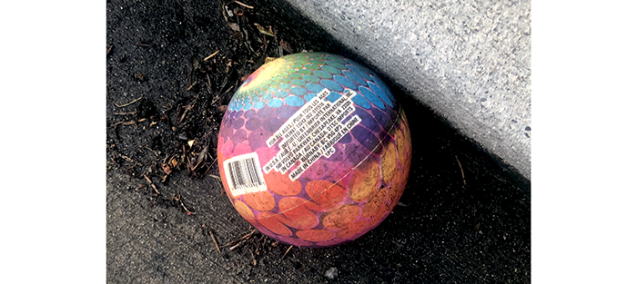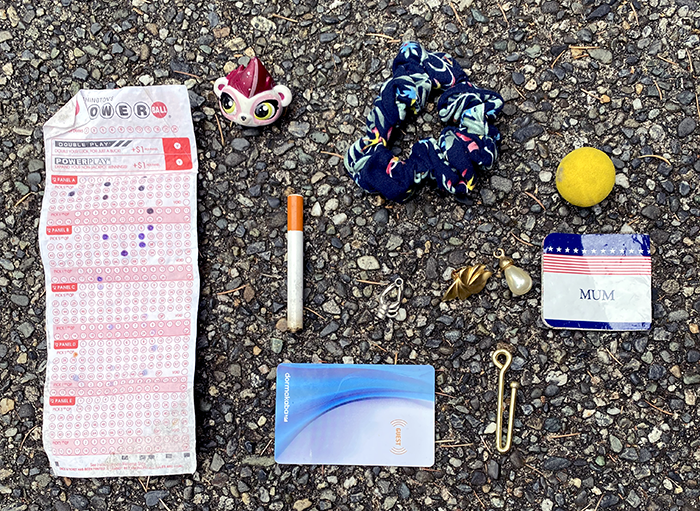Pretty boring, really. Lottery ticket picks which are pretty useless, even if the numbers were winners. We have found headless dolls, but today it was a doll-less head. Another hair band, a yellow foam ball and another fake cigarette vaping device.