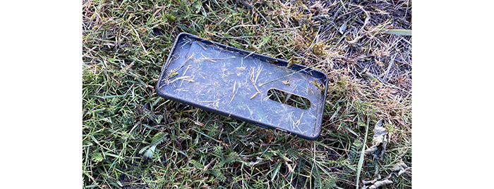 Okay, it was a bit more than slightly damaged. The model number was A1661 which, according to this site, is an iPhone 7 Plus. We also found the protective case which appears to be relatively unharmed. So kudos for the case for surviving, but a one-star rating for not protecting the phone, which was its main purpose.