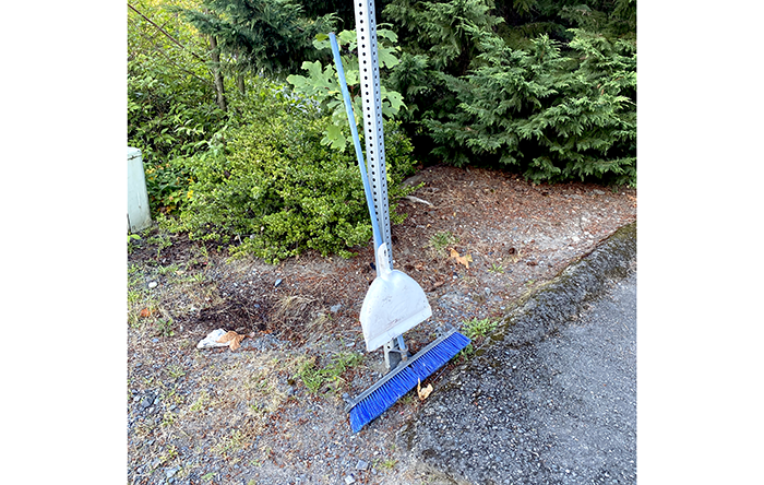 Someone left a broom and dustpan hoping we would clean up the mess. We disappointed them and left the broom alone. Okay, we did pick up quite a bit of the mess, but not all. Afterall, we are on a tight timeline on our walks.