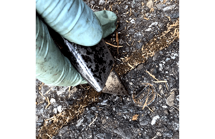 Unfortunately, it was embedded in the pavement, and we were unable to dislodge it. We are not easily deterred. We will be back.