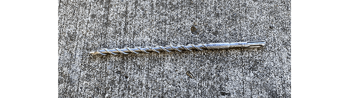 A slightly used and not runover masonry drill bit. We looked around but didn’t see any fresh holes in the concrete, so we took it. We never know when we’ll have a sudden craving to drill holes in concrete.