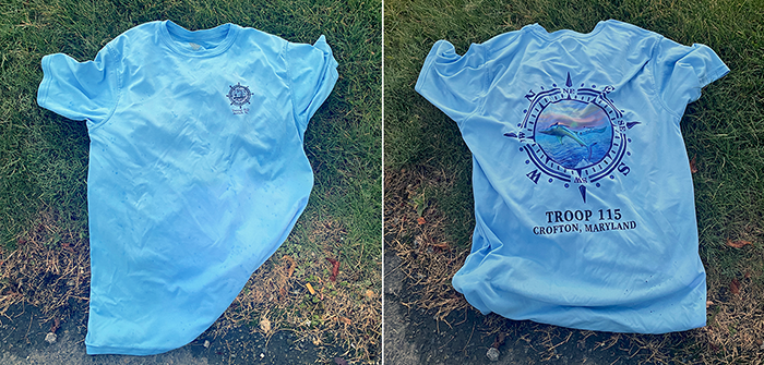 On the front was a small logo for a Bothell, WA scout troop and on the back, a large logo for a Crofton, MD scout troop. So, is this like a scouting report? And is Bothell the farm team for Crofton or vice-versa?