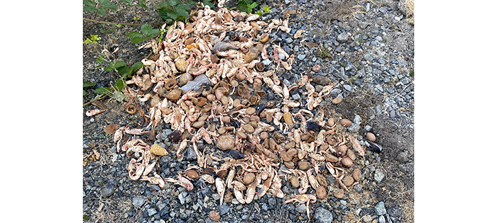 Someone dumped a bunch of large prawns at the blocked entrance to the Sammamish River.