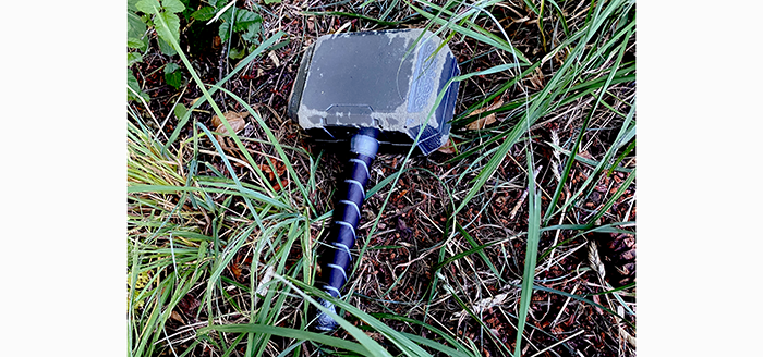 Thor’s hammer! According to Wikipedia, “Mjolnir, known more formally as Mjölnir (/ˈmjɔːlnɪər/) is a fictional magical weapon appearing in American comic books published by Marvel Comics.” Fictional?? We found it!