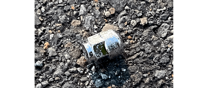 On the freeway onramp at the park-and-ride, another lost lug nut.