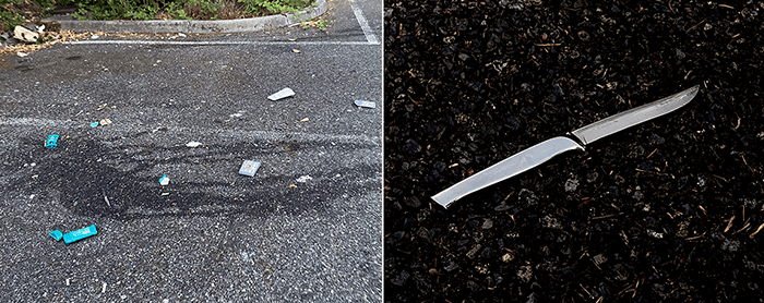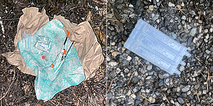 Needles and some orange pills. Also, three containers of something. Two were empty but one was half full. When we got home, we checked them out. It was Sterilized water. They were probably shooting up thinking they got the special batch.