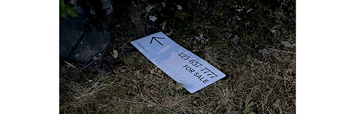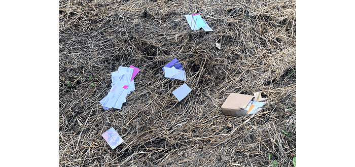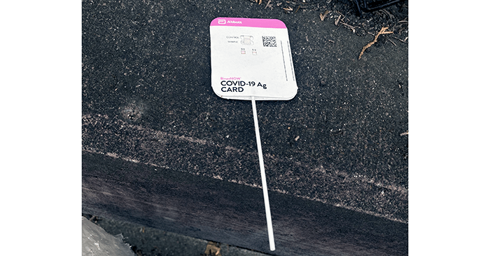 A used COVID rapid test kit. It looks to be a negative test, otherwise we would have left it on the sidewalk.