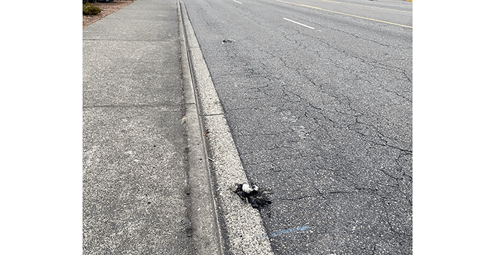 The snake seemed unscathed except it had expired. The rabbit was run over, and the crows had just discovered it. We removed it from the road and placed it near some bushes. After we left, one crow had flown to the ground but was looking in the wrong area. We don’t know if they finally found it.