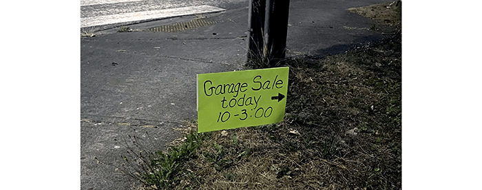 This was at about 5:30 in the morning, so was this put up yesterday and was for 10:00 am to 3:00 pm yesterday? Or did they get up early this morning to put up the sign for today? But there’s another option. What if the garage sale was between 10 pm yesterday and 3 am this morning? Folks need to be more specific with their signage.