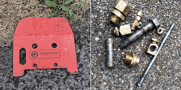 We found a bunch of brass fittings and a heavy plate from the Country Home Products store. Among other things, they make chipper-shredders which, anybody who watched the movie “Fargo” knows what it is used for.