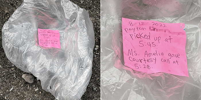 Picked up at 5:45, courtesy call at 5:28. But what we want to know is what time they tossed it out the window.