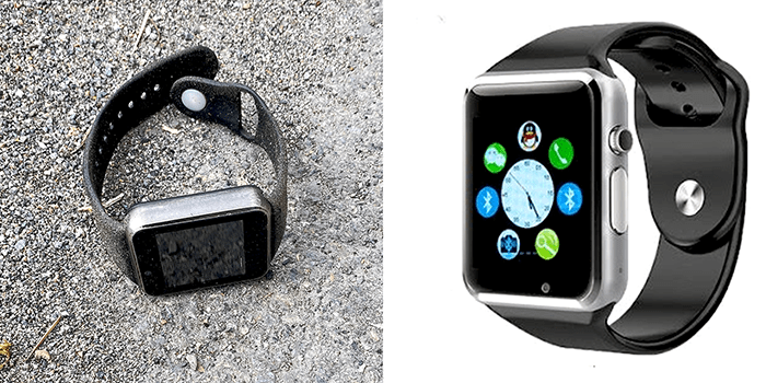 After some research, we determined it is a twenty-dollar Chinese watch. It appears that the activation button is stuck in and, although the watch is charging, it never wakes up. We could try to fix it, but for twenty bucks, it’s not worth it. If you want it, let us know. We’ll let it go for five bucks. Cash. Hey, the battery alone is worth ten bucks.