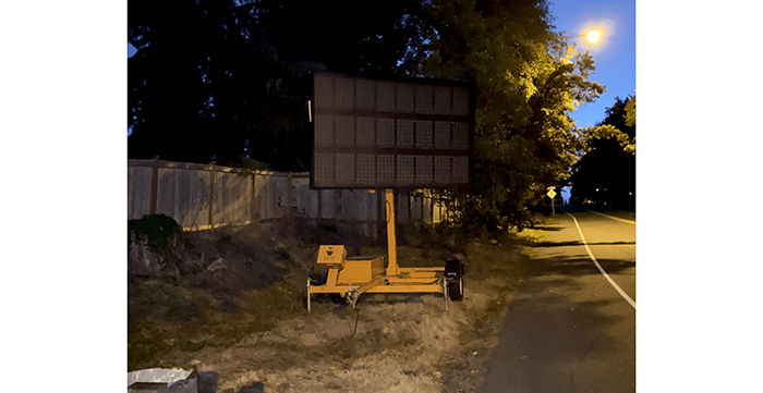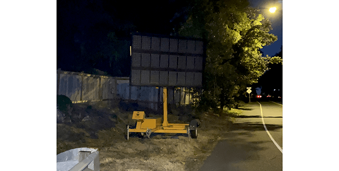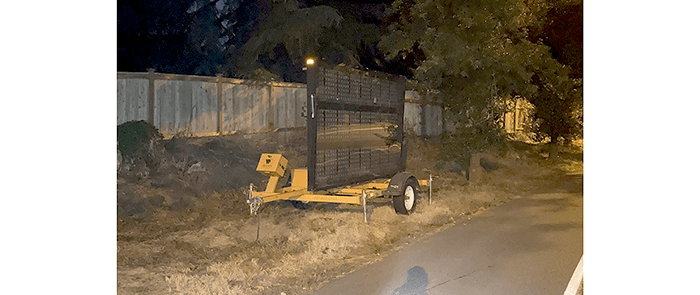 It has been turned off and folded for transport. At least we think it’s turned off. It’s hard to tell with this sign.