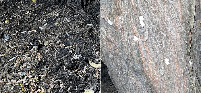 A bunch of butts on the ground, but then pressed into the tree. Really? So, we have read a lot about people who smoke and toss their butts. The excuses range from it’s a habit, they don’t realize they are doing it, to they enjoy tossing it and even, nobody put a receptacle nearby. Again, really? However, this takes it to a whole new level. “I love putting my cigarette butts where it will annoy the most people. Especially the TrashWalkers.” And yes, we cleaned up the tree. Buttholes. Not the tree, the people.