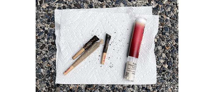 When we got home and opened it, we found two half-smoked joints and an unsmoked one. We doubt this guy meant to toss it but was probably partaking at the time.