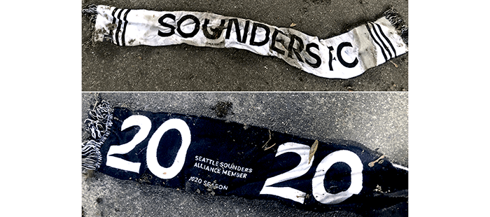 A 2020 Seattle Sounder’s fan scarf. It was in pretty rough shape, but we scarfed it up anyway and will try to resurrect it. We shall see.