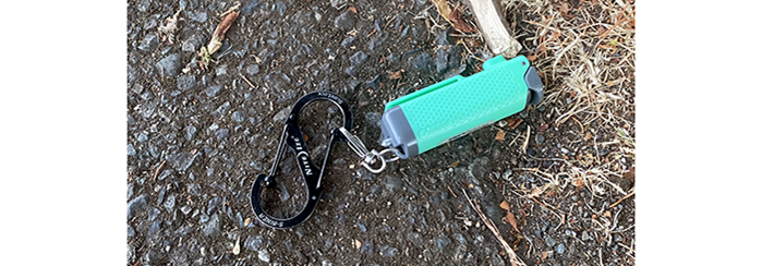 It is a combination pepper spray, seatbelt cutter and, window breaker. Chuck figured it must be empty and squirted it at a tree about ten feet away. It hit the tree but there was a blowback that caused Chuck to choke for a few seconds. It is definitely still active.