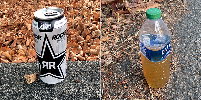 In addition to the granola bars, we found a paper plate in the middle of the road.