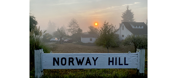 The combination of forest fire smoke and marine layer fog combined for an ethereal effect. Although improved, we think our sign needs some more work.