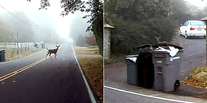 A mother deer crossed the road and after we passed, its faun hesitated. We continued and eventually the faun crossed and was reunited with deer mom.