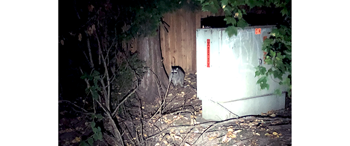 After several tense seconds, the raccoon won, and Janet backed down. Don’t blame Janet; the raccoon was wearing a spooky mask this close to Halloween.