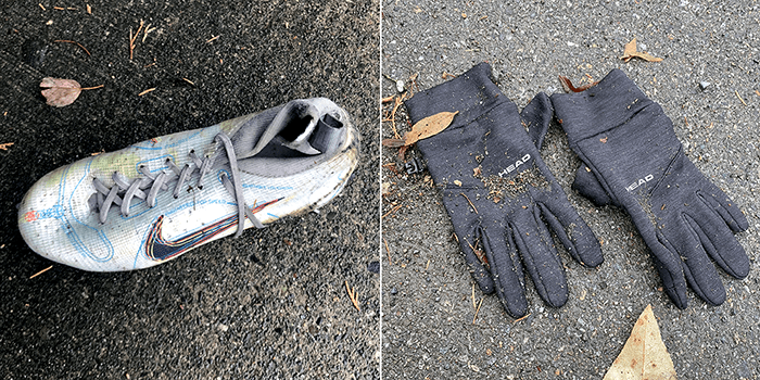 Well, one shoe in good condition and not of much use, and a pair of nice gloves that someone lost on the freeway onramp that cleaned up well and not headed for Goodwill.