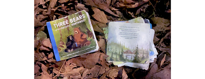 We picked up a lost and run over children’s book, “Three Bears of the Pacific Northwest.”