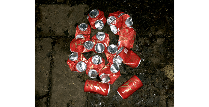 Fourteen cans of 14 Hands wine. That must have been quite a party which probably explains this.