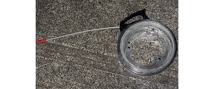 A fish tape for running cables in walls. It could be handy, but it was either run over or frozen or both and did not spin. We will check it out when it thaws in the garage. It still counts for a tool, though.