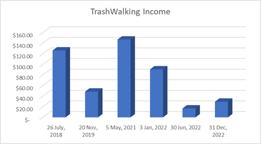 We took the time to get our finances in order. We put all the money we find in a Hofbräuhaus beer mug we call our tip jar. And yes, we also found the beer mug a few years back. We periodically count the money and report the findings. The last six months we found a total of $29.55.