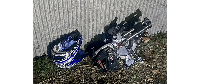 A powered Craftsman miter saw and, yes, it was with a helmet. We are all for safety in the workshop, but a helmet while cutting wood is a bit much. The saw was old and rusty and ended up in our recycle bin. The helmet looked to be in good condition. We’ll clean the sawdust out of it and send it to Goodwill.