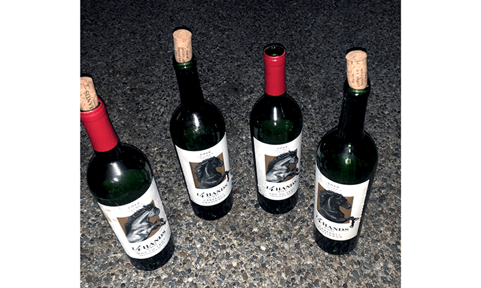 - 4 14Hands wine bottles.