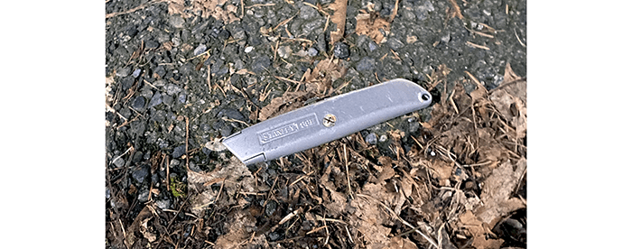 A Stanley utility knife in excellent condition, and there were extra blades inside, score! We can add this to our inventory of nine utility knives we’ve found, not including the countless others that were damaged and recycled.