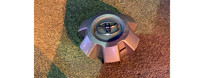 We’ve found many Toyota wheel covers, mostly smashed. This is one of the few hub caps in good condition we’ve found. We need to open an eBay site.