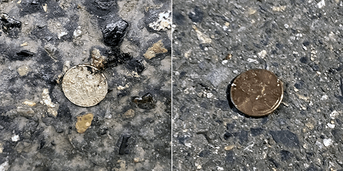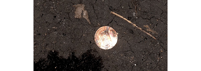 Eleven cents, a dime mined by Janet and a penny in the gutter.