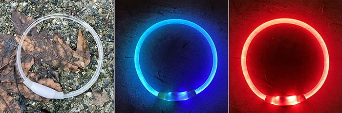 After charging, it lighted up in multicolors. Chuck tried to get Janet to wear it as an extra safety precaution. She growled at him, and he backed off.