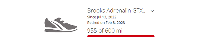 955 miles is the longest distance we have worn a pair of shoes since we started keeping track in January of 2017. But it was worth the wait. Notice the cool leopard spots on Janet’s shoes. No, it was not offered on the men’s version. That seems very un-PC to us.
