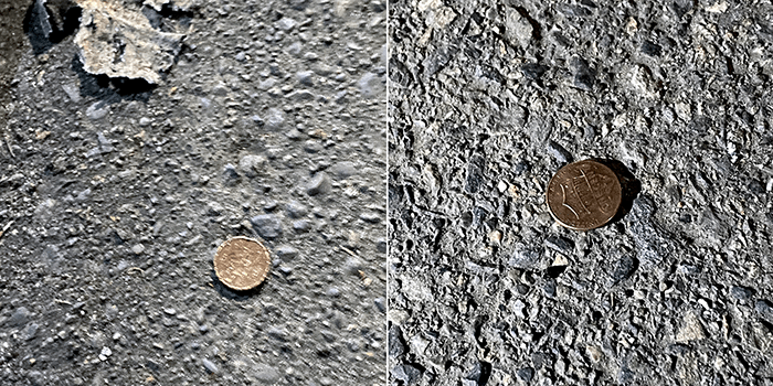 This was in the gutter on Brickyard Road. Remember a penny in the hand is worth two in the gutter.