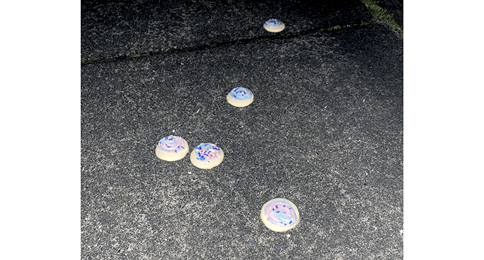 Someone tossed their cookies. A Valentine present? “Hi Irving, thanks for the cookies.” “You’re welcome, Alison. I was wondering if you’d like to come over and go down in my mom’s basement to play some video games?” That’s the way the cookie doesn’t crumble.