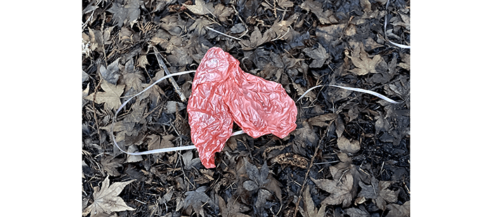 From the Finance Department, two cut credit cards and from the Jewelry Department, a loose fake opal, and a run-over earring, we think. Finally, from the Confectionery Department, a wrapped piece of candy.