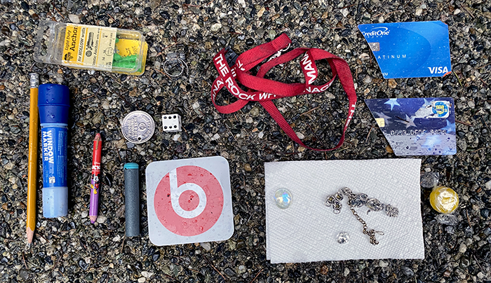In the Games and Entertainment Department, a Washington State Lottery Scratch-and-Lose coin that someone lost. A single die, a Nerf bullet and a Dr. Dre Beats sticker. These stickers are sold on Amazon for five bucks. Go Figure.