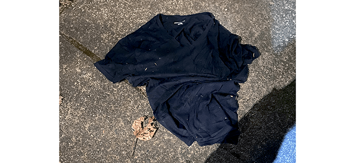 A t-shirt that was laying in the middle of the street. It was an Amazon Essentials t-shirt in good condition. Maybe we should sell it on eBay. We could sell it for five dollars and say it was ten dollars on Amazon.