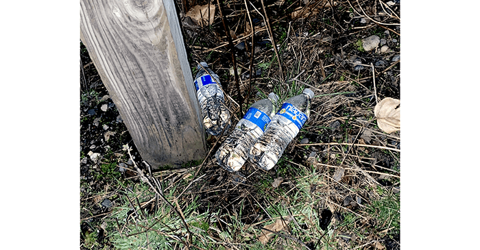 At the freeway offramp we found three unopened bottles of water.