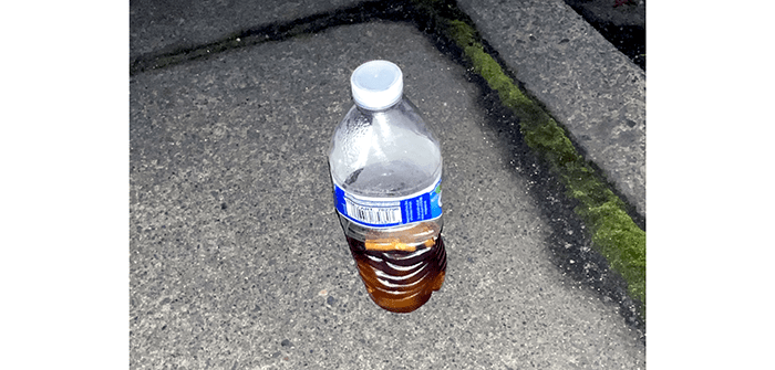 This one was a butt bottle. Instead of tossing their butts out the window, smokers drop them in a water bottle then toss the water bottle out the window. No, we don’t know why, but maybe they are the same people who use a dog poop bag to pick up after their dog then toss the bag. Just a theory.